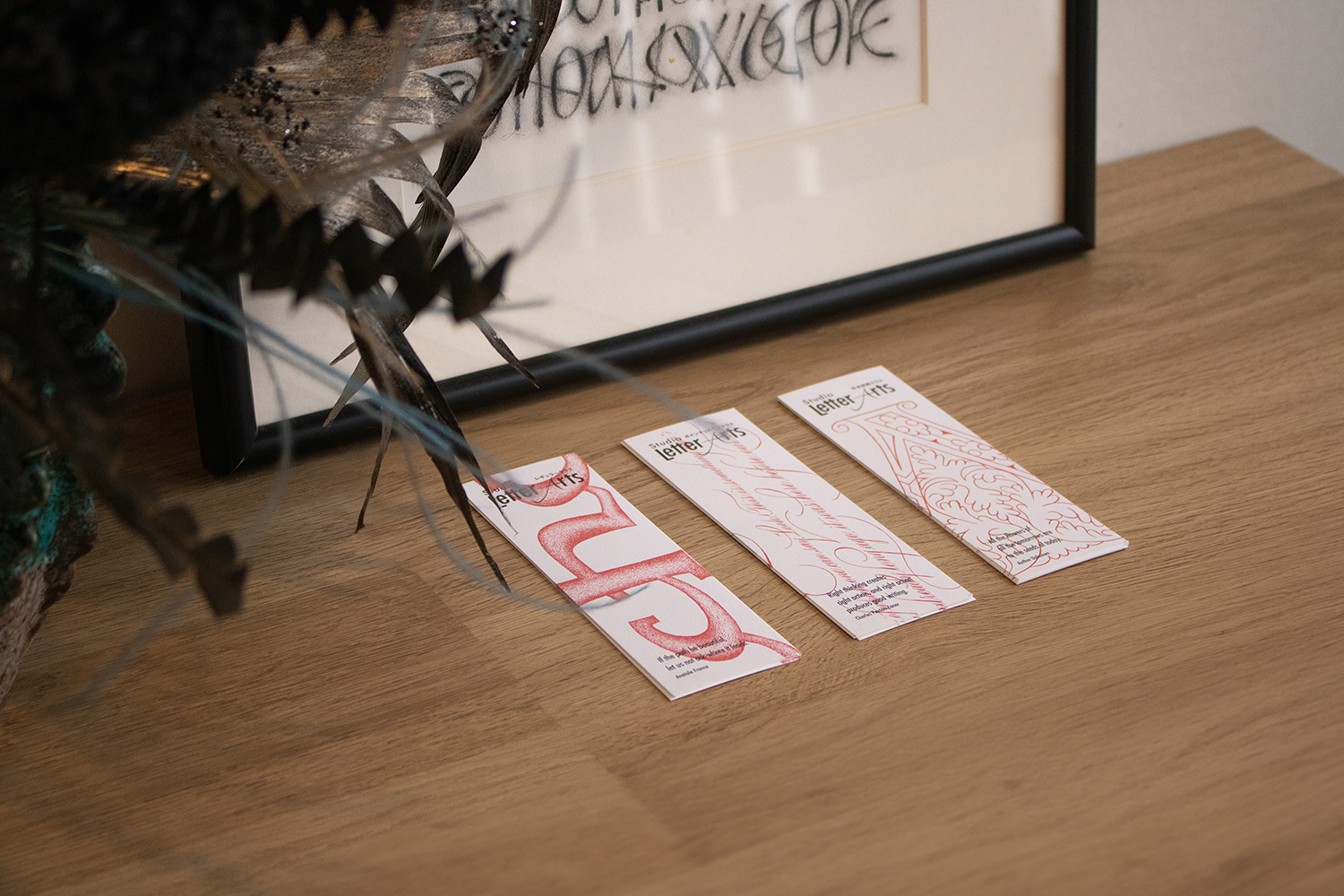 兵庫県芦屋市を拠点に活動するカリグラフィー教室「Studio Letter Arts」の教室案内、作品展のDM、名刺デザインを担当。カリグラフィーが持つ魅力の一つである文字の造形美にフォーカスを当て、ディティールを魅せるデザインを模索。3つのクラスそれぞれを栞型の教室案内に落とし込んだ。